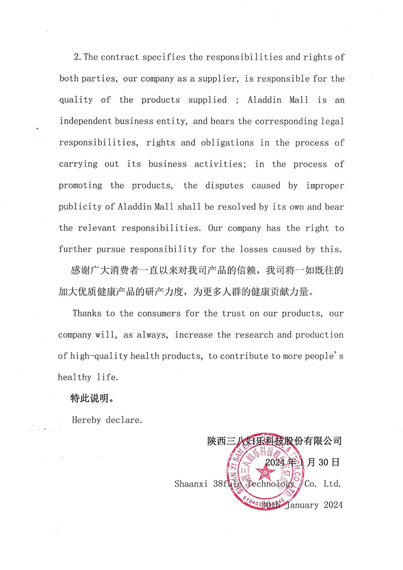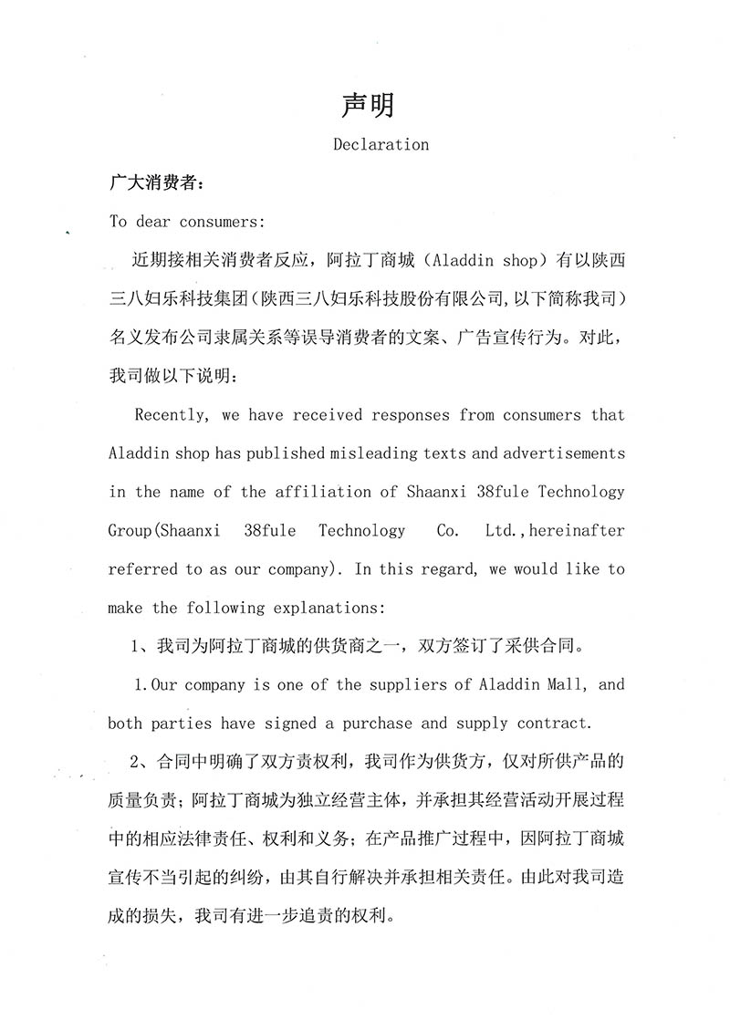 近日,我司接到反映和投訴稱市場上有經(jīng)銷商假借“三八婦樂”的名義,以“交1.5萬元成為合伙人,直接拿2.5萬元產(chǎn)品,享受創(chuàng)業(yè)基金,1.5萬元按月返還”的模式進行運作,對此我公司鄭重聲明...