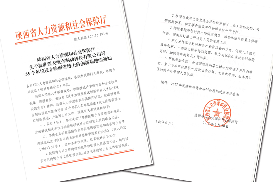 陜西省人力資源和社會保障廳發(fā)布了2017年陜西省博士后創(chuàng)新基地名單文件