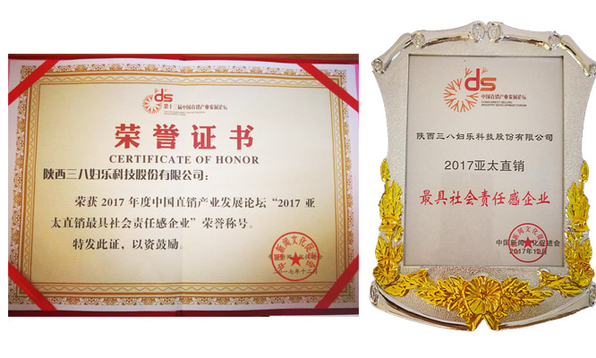三八婦樂(lè)榮獲“2017亞太直銷最具社會(huì)責(zé)任感企業(yè)”稱號(hào)