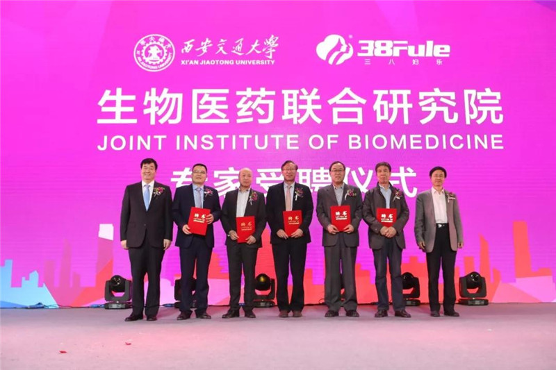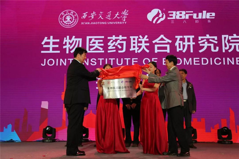 西安交通大學(xué)黨委副書記趙軍武和三八婦樂集團(tuán)董事長袁曉峰共同為生物醫(yī)藥聯(lián)合研究院揭牌