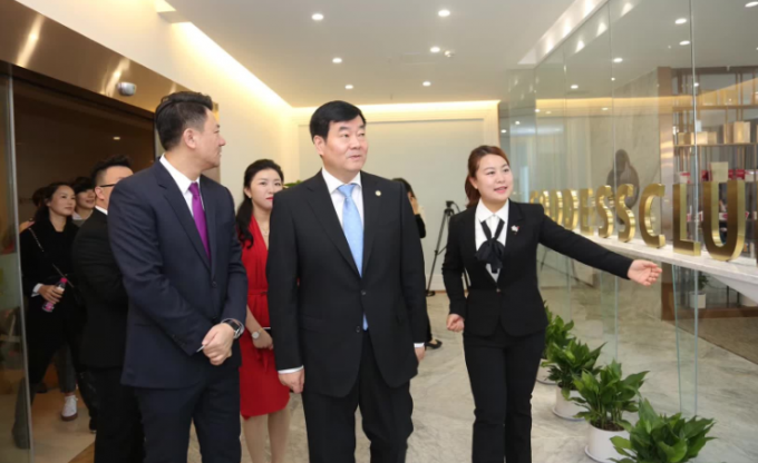 李南陪同袁曉峰董事長(zhǎng)(中)視察首家“婧媛薈”