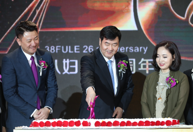 袁曉峰董事長(zhǎng)(中)和李南同慶三八婦樂(lè)26周年