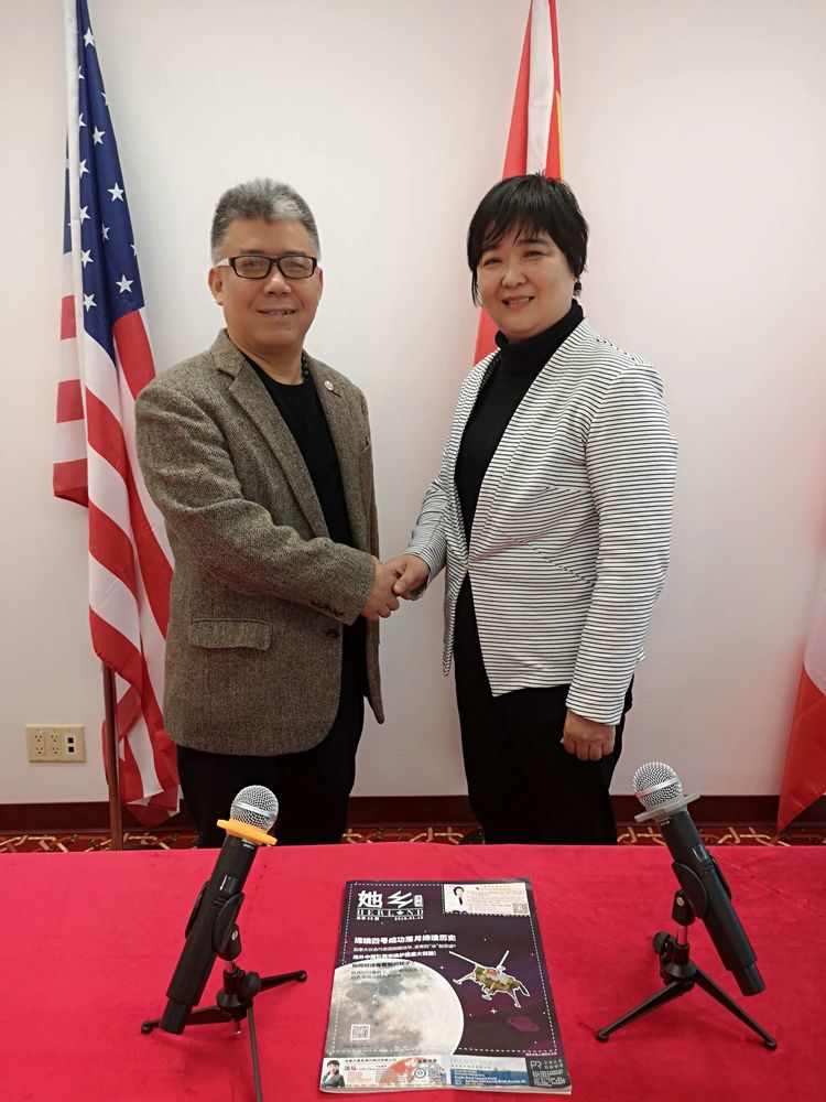 38FULE北美控股公司總經(jīng)理Tony Zhang(左)與她鄉(xiāng)華聞主編Linda Chen
