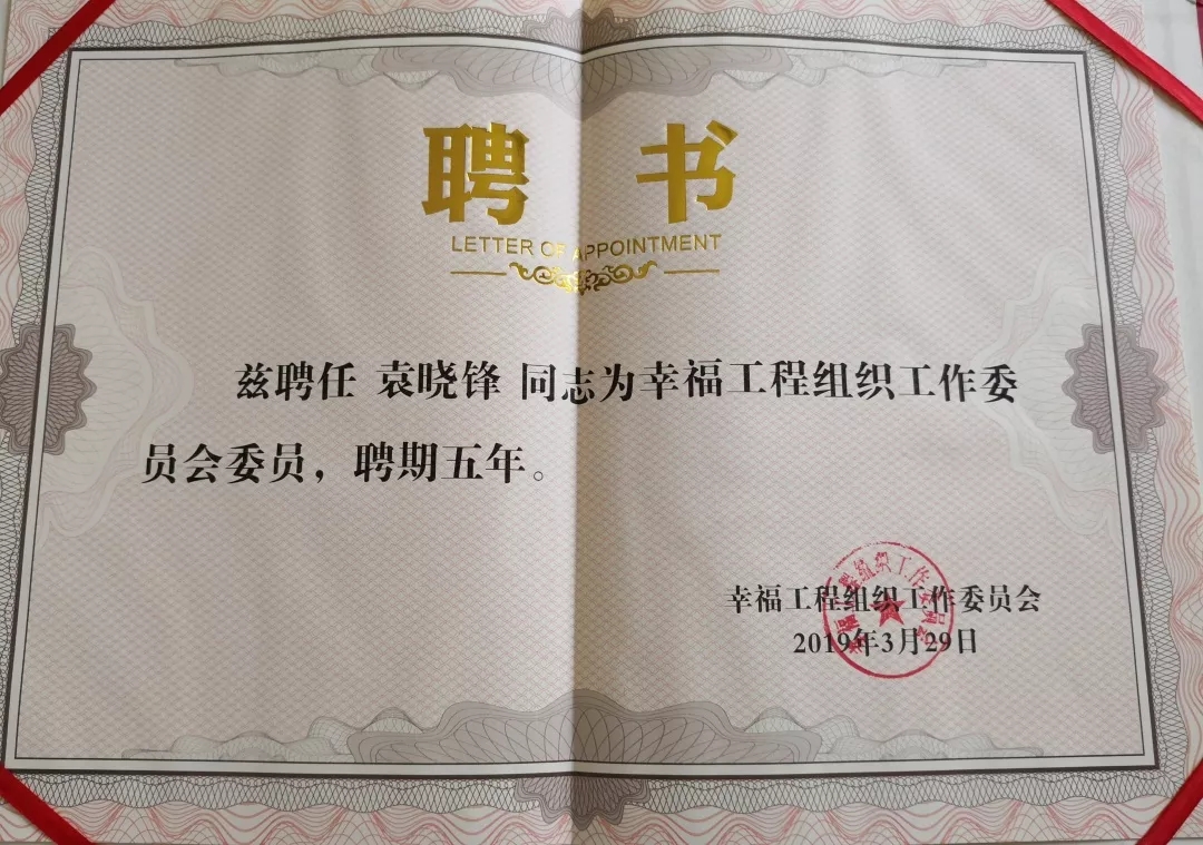 三八婦樂袁曉峰擔(dān)任幸福工程全國組織工作委員會委員