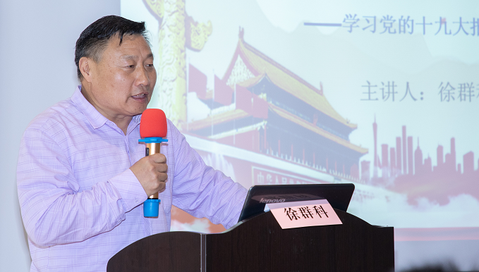 最后,由李臺(tái)街道黨工委下派非公企業(yè)第一書(shū)記徐群科進(jìn)行題為《新時(shí)代新思想 新征程——學(xué)習(xí)黨的十九大報(bào)告精神》的集中黨課。徐群科首先從政治、思想、理論、實(shí)踐、歷史五個(gè)方面,深刻闡述了十九大召開(kāi)的偉大意義,并結(jié)合非公企業(yè)實(shí)際情況,對(duì)報(bào)告結(jié)構(gòu)的13個(gè)部分有針對(duì)性地進(jìn)行了解讀。他指出,黨的十九大報(bào)告對(duì)企業(yè)的理論指導(dǎo)與實(shí)踐有很大的幫助,企業(yè)應(yīng)當(dāng)結(jié)合自身,把黨的十九大的精神融入日常工作與生活當(dāng)中,做到隨時(shí)自我糾正、自我檢討、自我約束。