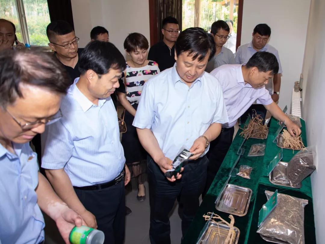 在掛牌儀式結(jié)束之后,淳化縣委副書記、縣長郭立志也在百忙之中趕到現(xiàn)場,并帶領相關領導和專家學者來到三八婦樂藥用植物種植基地——東莊藥用植物園進行實地調(diào)研。郭立志縣長一行先后參觀了企業(yè)展廳和種植園地等區(qū)域。陜西東莊藥用植物園有限公司總經(jīng)理魏建峰陪同參觀,并介紹了基地中藥材種植情況、中草藥發(fā)展現(xiàn)狀及企業(yè)的未來規(guī)劃。