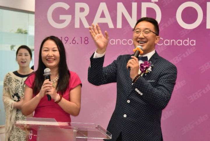 加拿大中國遼寧省總商會/同鄉(xiāng)會創(chuàng)會會長吳彤,也是溫哥華的金牌主持人以及38FULE Corporation 的市場總監(jiān)Kelly Li 女士主持了開業(yè)盛典。