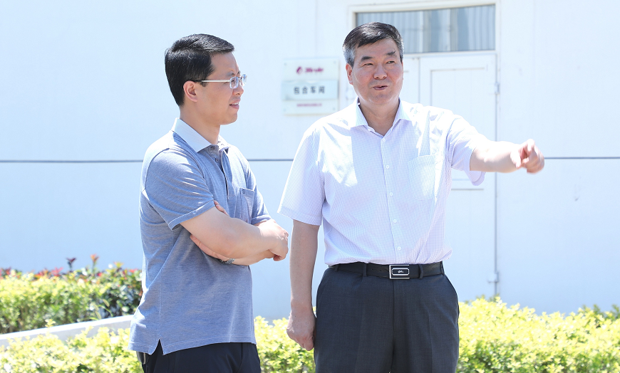 袁曉峰董事長向單舒平書記(中)和張辰宇院長(左一)介紹產(chǎn)品研發(fā)情況