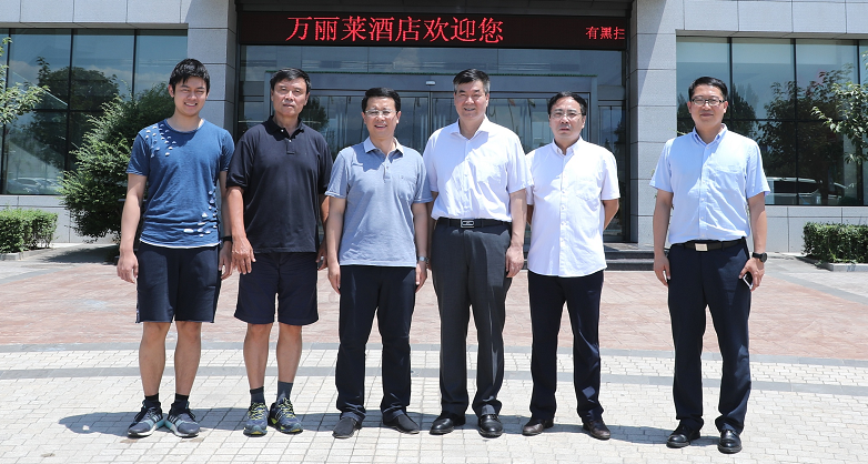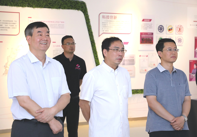 單舒平書記(右二)和張辰宇院長(右三)及袁曉峰董事長共同參觀企業(yè)展廳