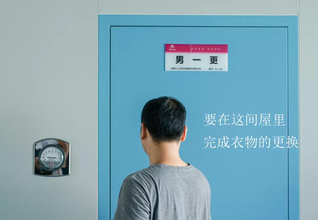 進(jìn)入車(chē)間前要經(jīng)過(guò)兩間更衣室,我們要在第一間更衣室脫掉外套、鞋子等衣物,為了保證基本的潔凈。