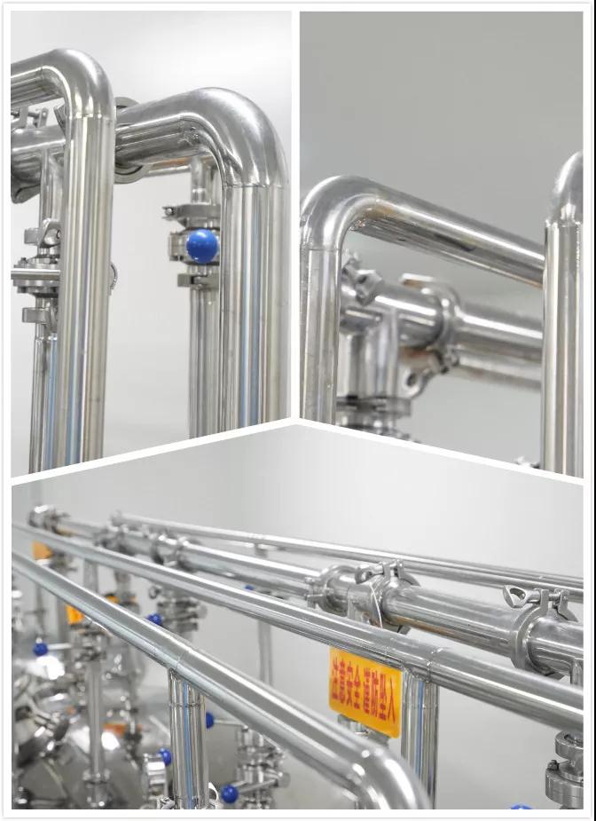 罐體生產(chǎn)出來(lái)的液體是不用進(jìn)行二次運(yùn)輸?shù)?,通過(guò)這些管道直接輸送到后面的生產(chǎn)線,保證整個(gè)過(guò)程都是無(wú)菌環(huán)境,不會(huì)受到二次污染。每一罐原料歷經(jīng)多重檢驗(yàn)關(guān)卡,在產(chǎn)品的生產(chǎn)中嚴(yán)格升級(jí)了防護(hù)與除菌潔凈流。