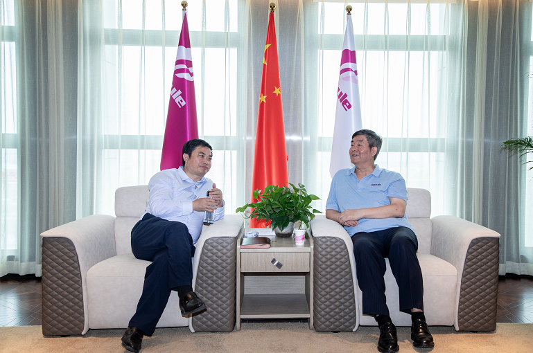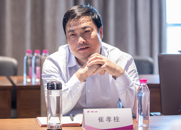 崔孝栓縣長(左)與袁曉峰董事長交談