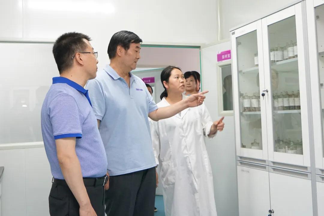 程津慶副主任(左)參觀產(chǎn)品留樣室