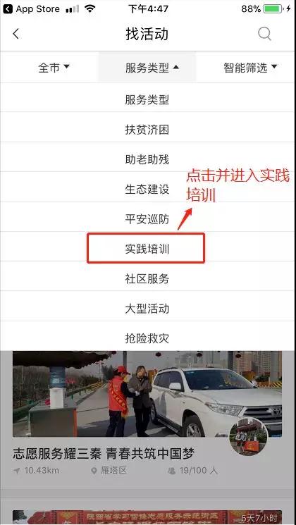 在“服務(wù)類型”選項(xiàng)下,選擇實(shí)踐培訓(xùn)并點(diǎn)擊進(jìn)入