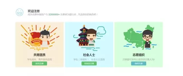 根據(jù)自己的情況,選擇“共青團(tuán)員”或“社會(huì)人士”,并點(diǎn)擊進(jìn)入