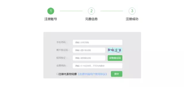“志愿中國”服務(wù)管理平臺(tái)注冊(cè)流程